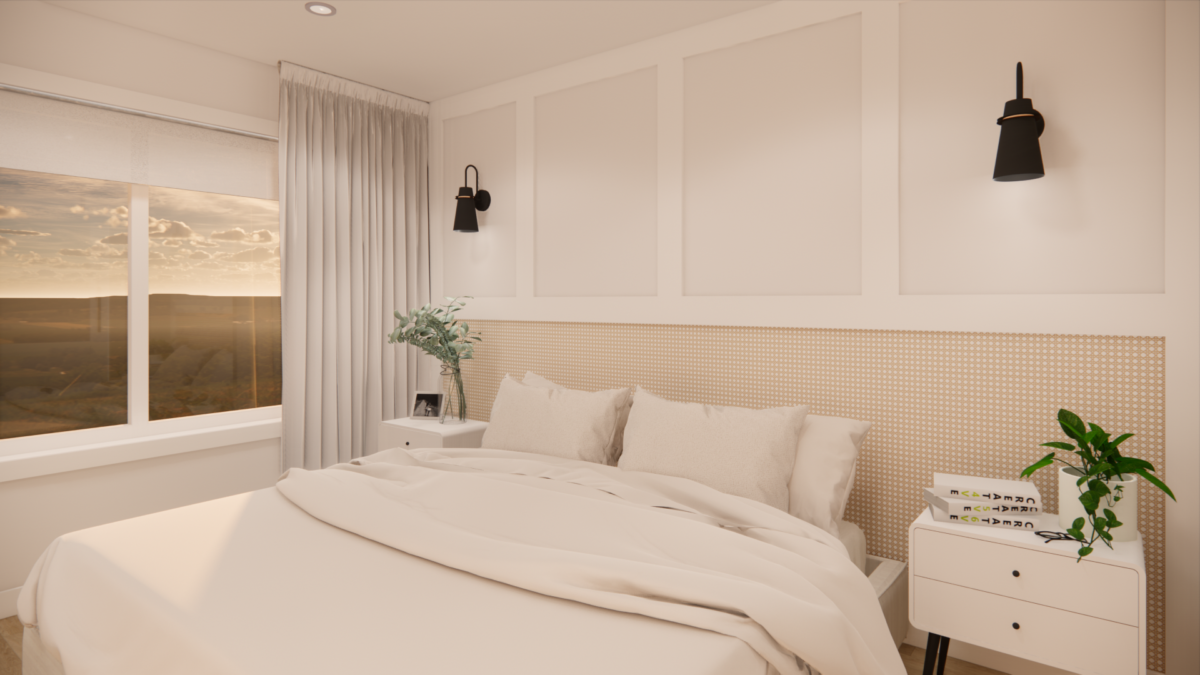 Type de projet : Suggestion d’application dans une chambre : du papier peint en cannage tressé en osier. Disponible ici